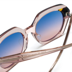 Viva makes a grand and graceful statement. This oversized frame, while beautifully neutral at a glance, conceals an inner burst of bold color—the ideal harmony of refined polish and passionate energy.
